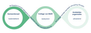 Samenvattend: de Raad is (éénmalig) kaderstellend, het college bestuurt, en de ambtelijke organisatie handelt uitvoerend. Zo kan de organisatie snel en wendbaar inspelen op constante veranderingen in systemen, communicatiekanalen en natuurlijk de gebruikersbehoefte.